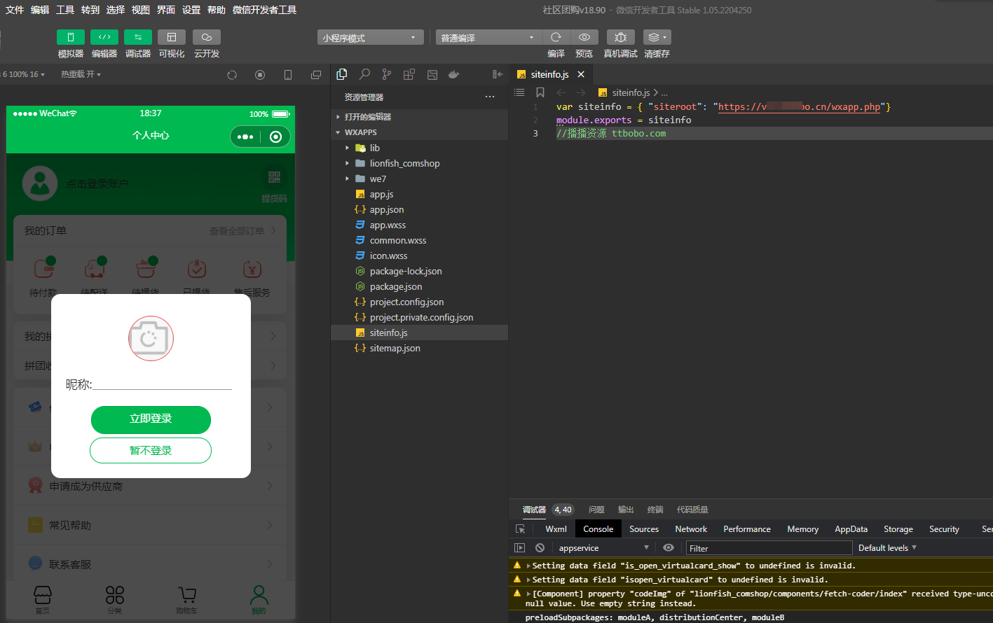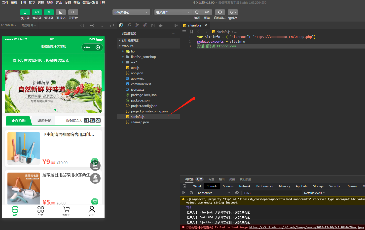 4,打开小程序前端目录里的siteinfo.js文件,把网址v3.ttbobo.cn改成你自己的网址,注意网址需要开启https服务
